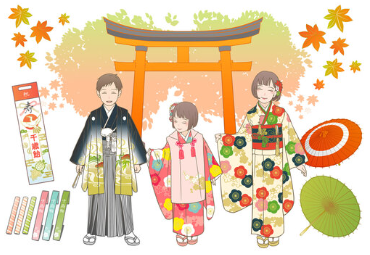 SHICHI・GO・SAN (7,5,3) is a traditional festival in Japan celebrated on 15th of November. Normally, 3 years old girls, 5 years old boys, and 7 years old girls go to a shrine and pray for good health and well-being. In the old days, children surviving to grow older was not as easy as today. Therefore, people wished for children to grow up healthy and celebrated their growth at the same time.